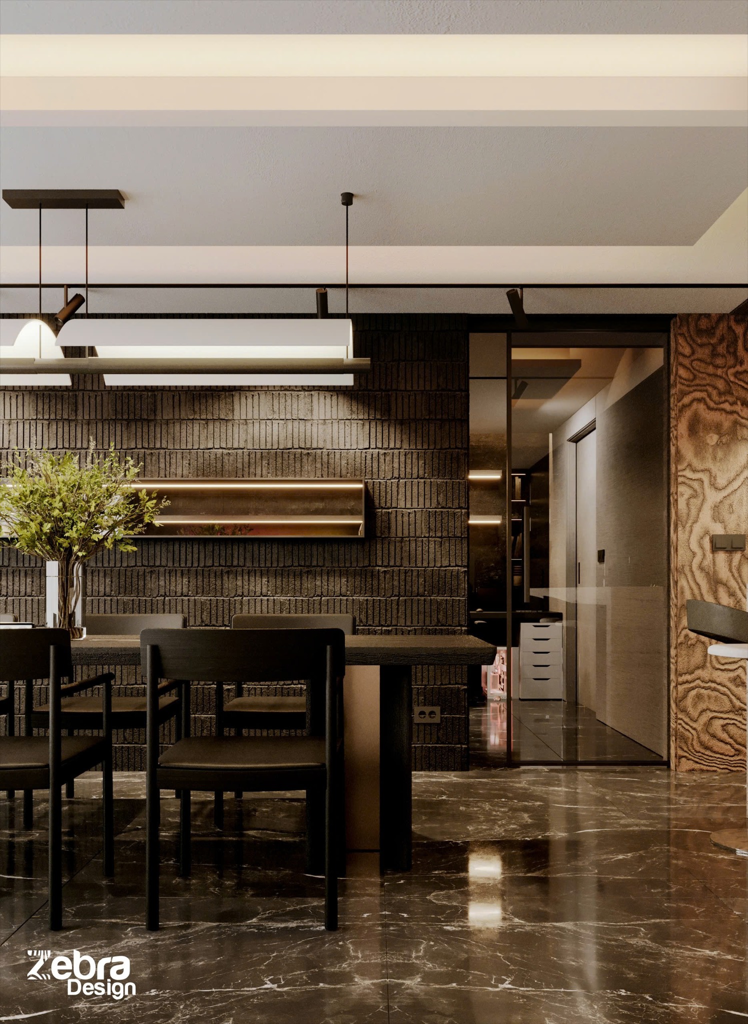 Dự án được Zebra thực hiện với sự tính toán kỹ lưỡng trong từng lớp vật liệu, từng tông màu và đặc biệt là cách tổ chức ánh sáng, yếu tố quyết định cảm xúc của toàn bộ không gian.